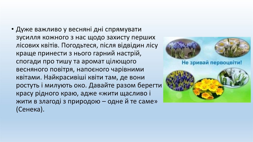 • Дуже важливо у весняні дні спрямуватизусилля кожного з нас щодо захисту перших