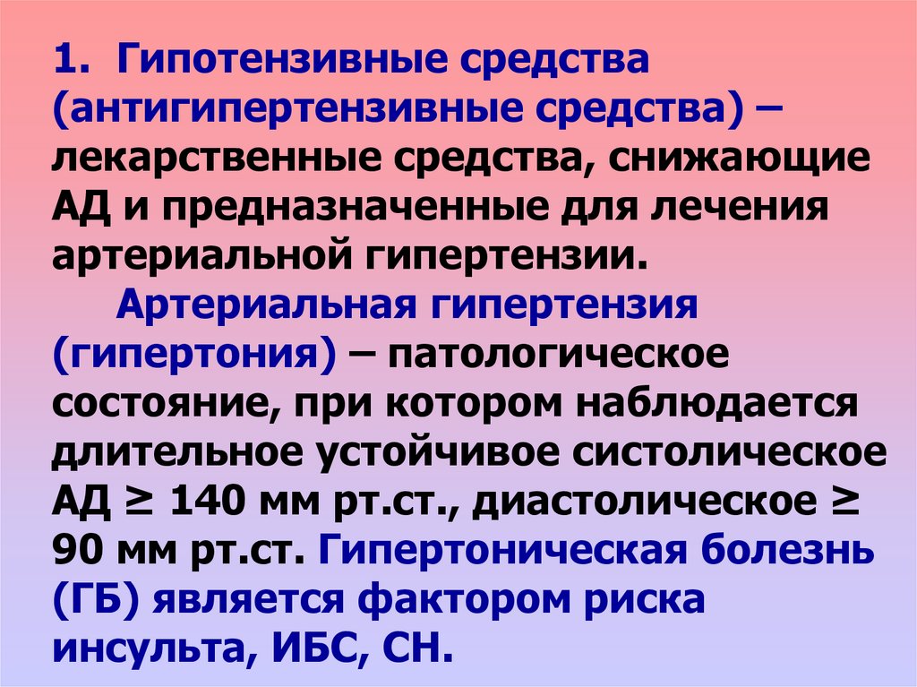 8. ОСНОВНЫЕ ГРУППЫ АНТИГИПЕРТЕНЗИВНЫХ ПРЕПАРАТОВ В КЛИНИКЕ