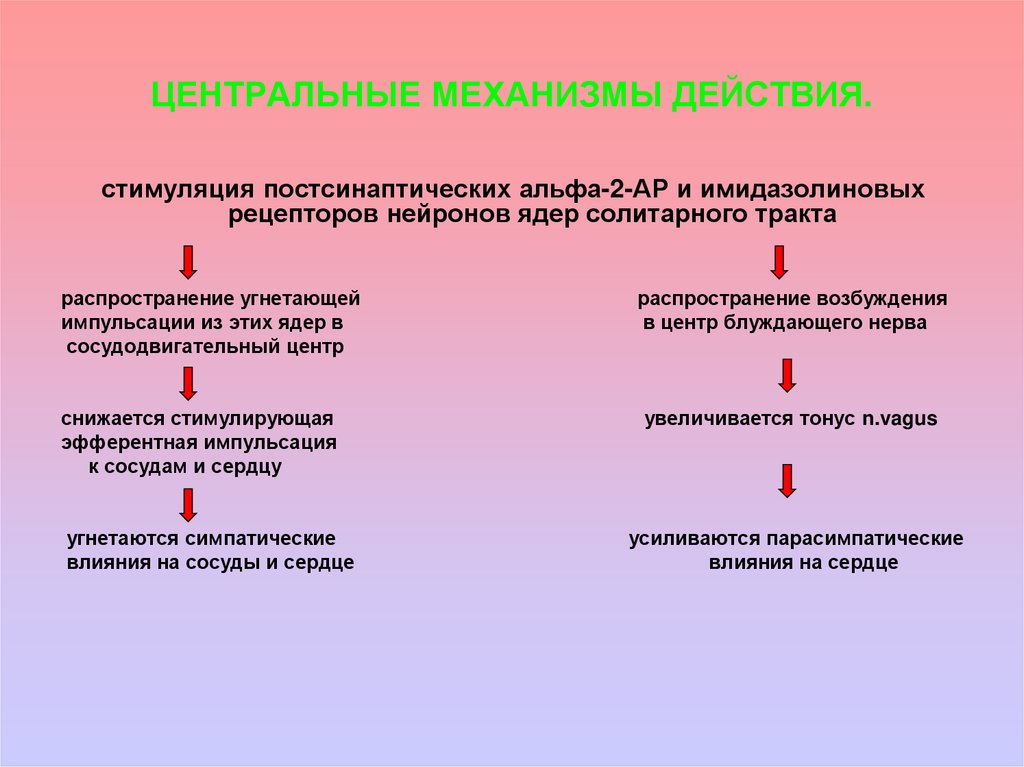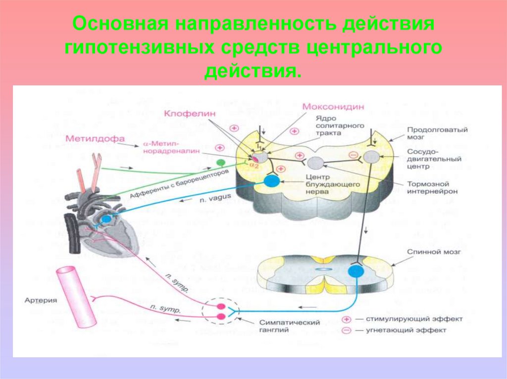 35. Основная направленность действия гипотензивных средств центрального действия.
