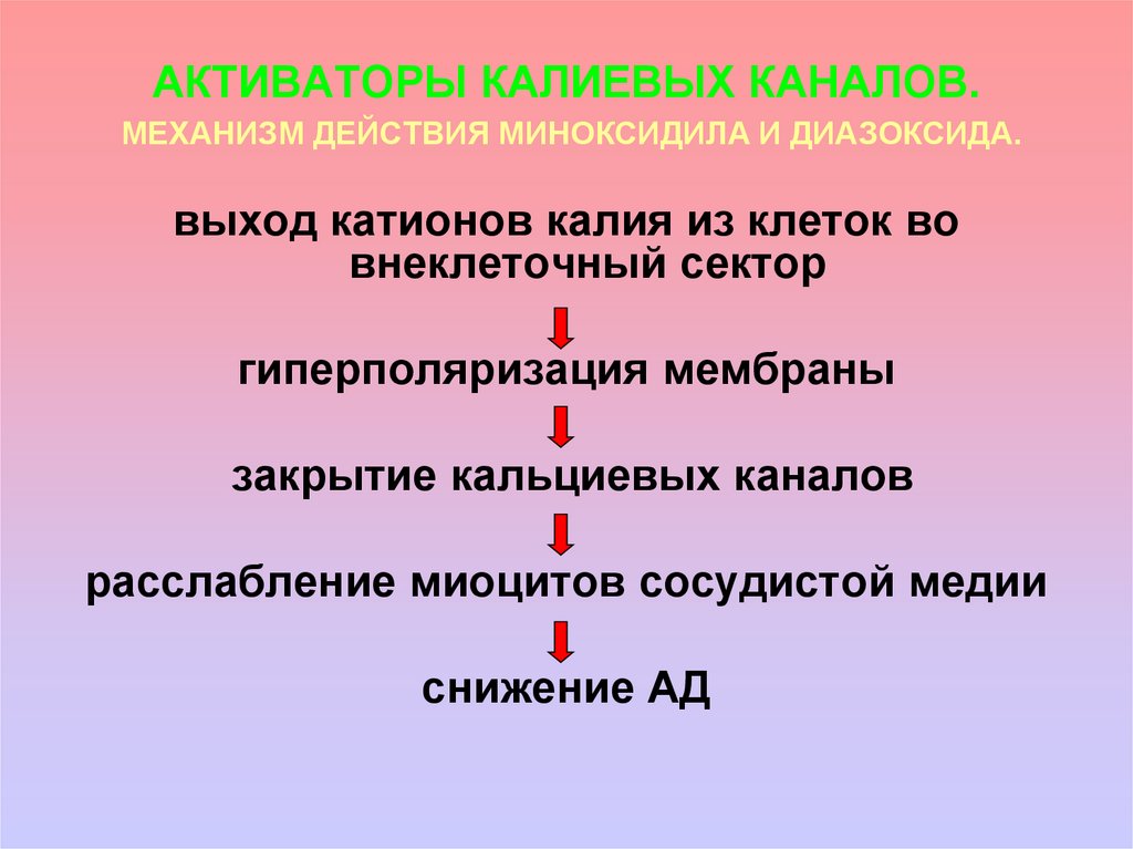 38. АКТИВАТОРЫ КАЛИЕВЫХ КАНАЛОВ. МЕХАНИЗМ ДЕЙСТВИЯ МИНОКСИДИЛА И ДИАЗОКСИДА.