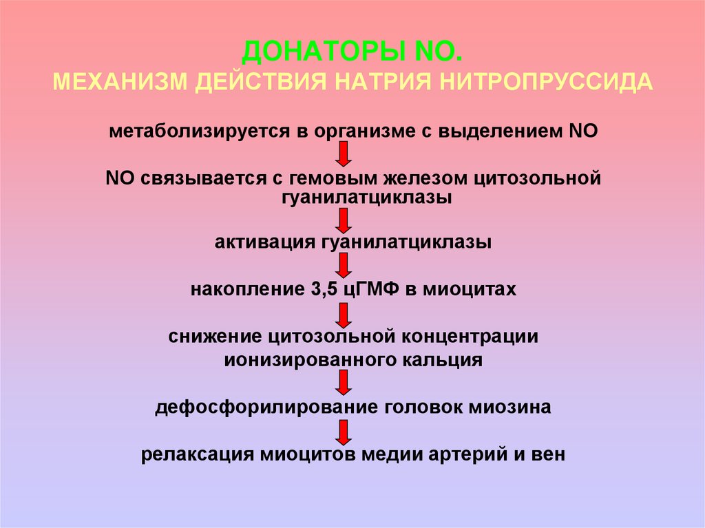 40. ДОНАТОРЫ NO. МЕХАНИЗМ ДЕЙСТВИЯ НАТРИЯ НИТРОПРУССИДА