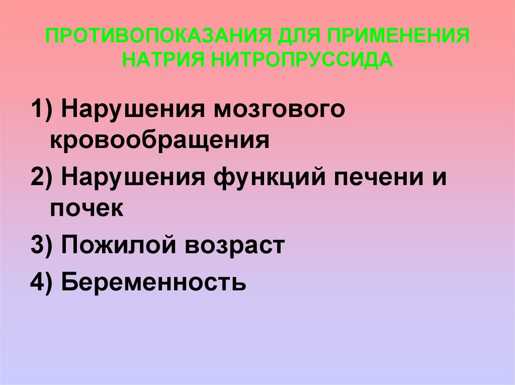 42. ПРОТИВОПОКАЗАНИЯ ДЛЯ ПРИМЕНЕНИЯ НАТРИЯ НИТРОПРУССИДА
