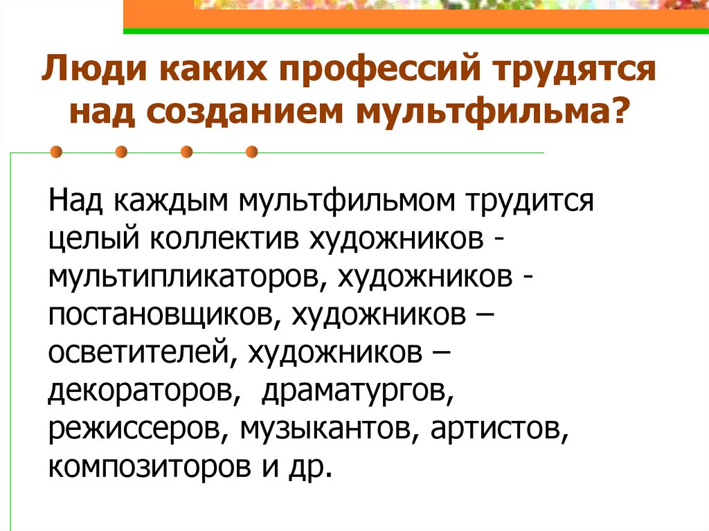 целый коллектив художников мультипликаторов, художников постановщиков, художников –