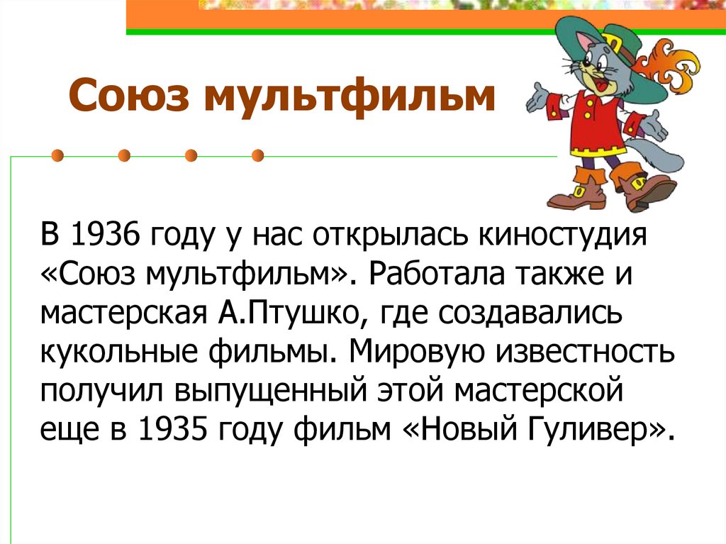 Союз мультфильмВ 1936 году у нас открылась киностудия