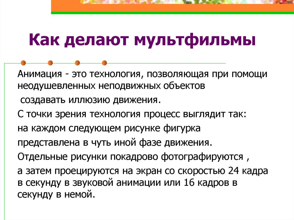 Как делают мультфильмыАнимация - это технология, позволяющая при помощи