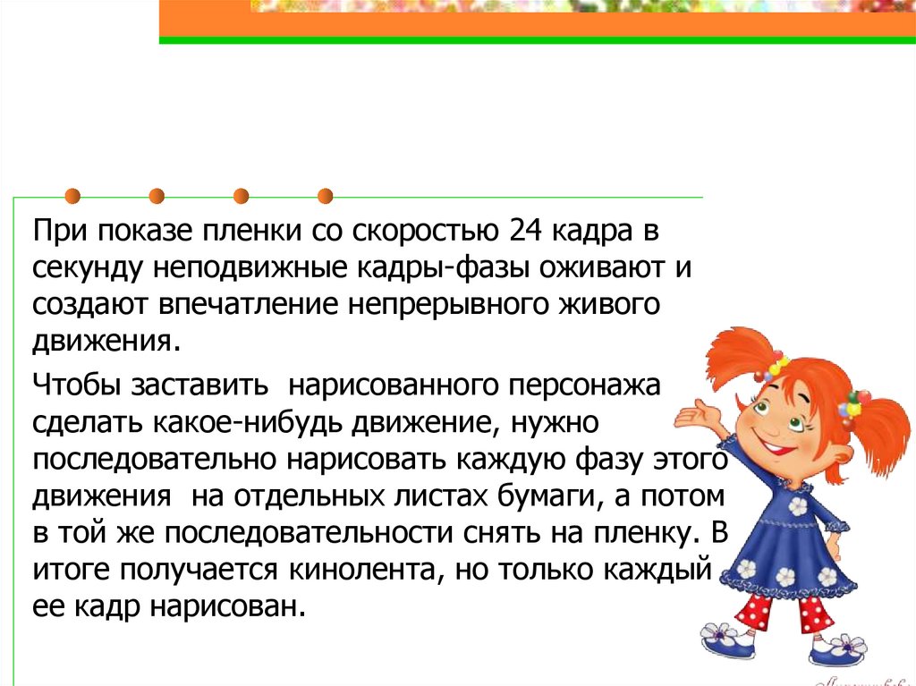 При показе пленки со скоростью 24 кадра всекунду неподвижные кадры-фазы оживают и