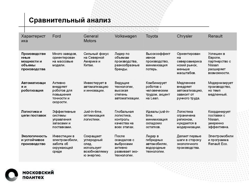 конкурентоспособности производителей авткомпонентов, включащая анализ текущего