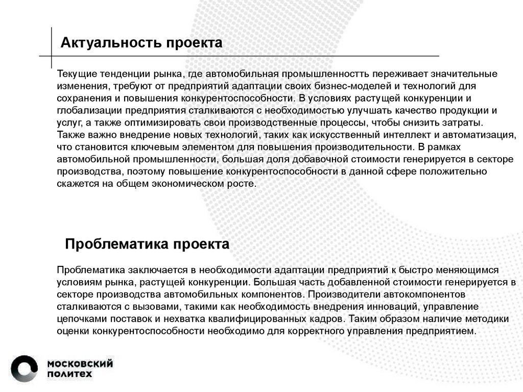 Актуальность проектаТекущие тенденции рынка, где автомобильная промышленностть переживает значительные