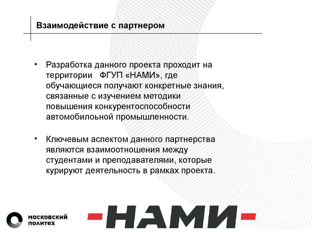 Взаимодействие с партнером• Разработка данного проекта проходит на