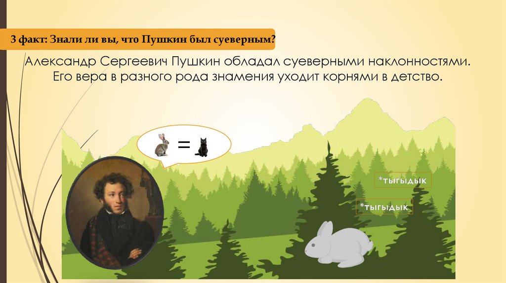 3 факт: Знали ли вы, что Пушкин был суеверным?Александр Сергеевич Пушкин обладал суеверными наклонностями.