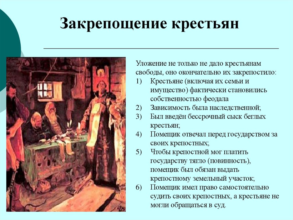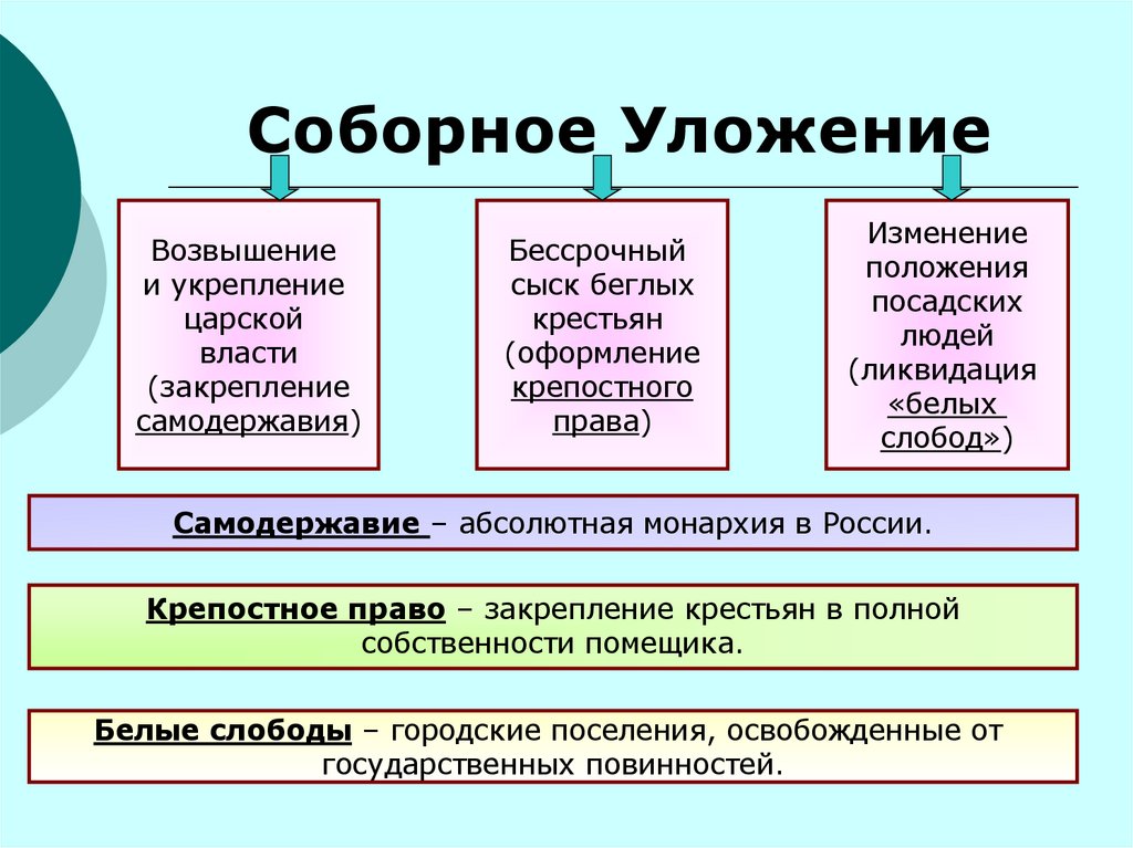 патриарху, монастырям, боярам. Соборное Уложение закрепило за