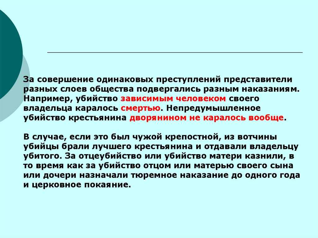 За совершение одинаковых преступлений представителиразных слоев общества подвергались разным наказаниям.