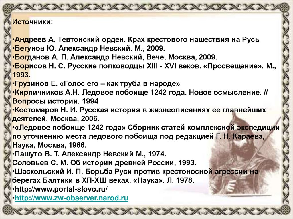 Источники:•Андреев А. Тевтонский орден. Крах крестового нашествия на Русь