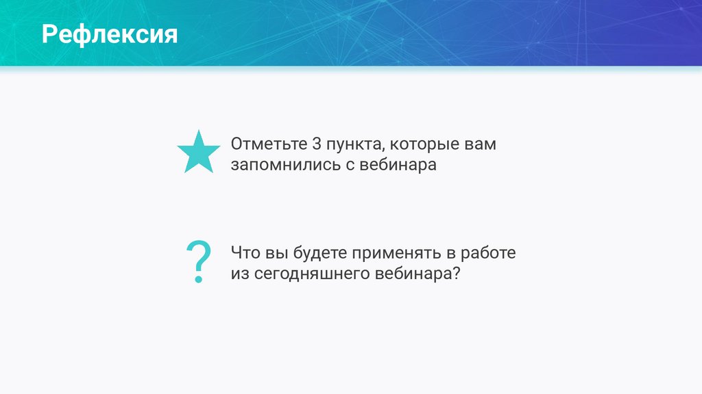 РефлексияОтметьте 3 пункта, которые вам