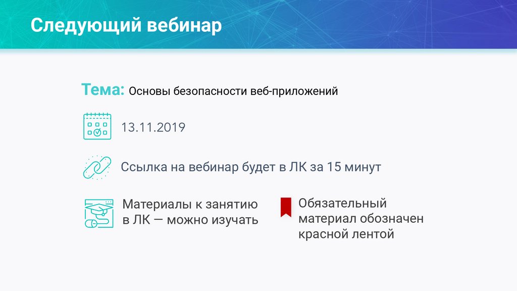 Следующий вебинарТема: Основы безопасности веб-приложений