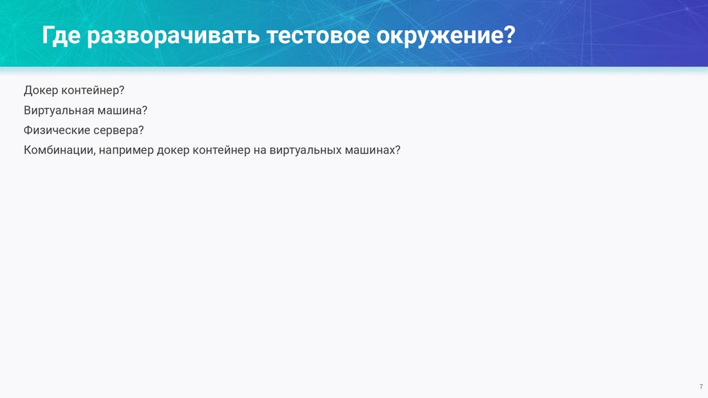 Где разворачивать тестовое окружение?Докер контейнер?
