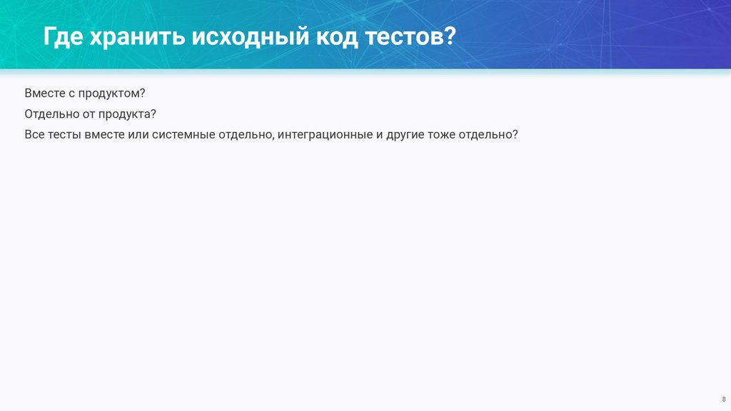 Где хранить исходный код тестов?Вместе с продуктом?