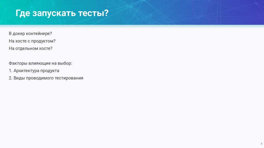 Где запускать тесты?В докер контейнере?