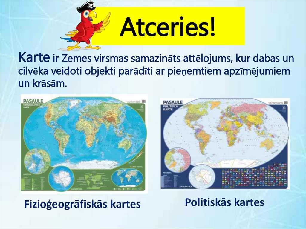 Atceries!Karte ir Zemes virsmas samazināts attēlojums, kur dabas un