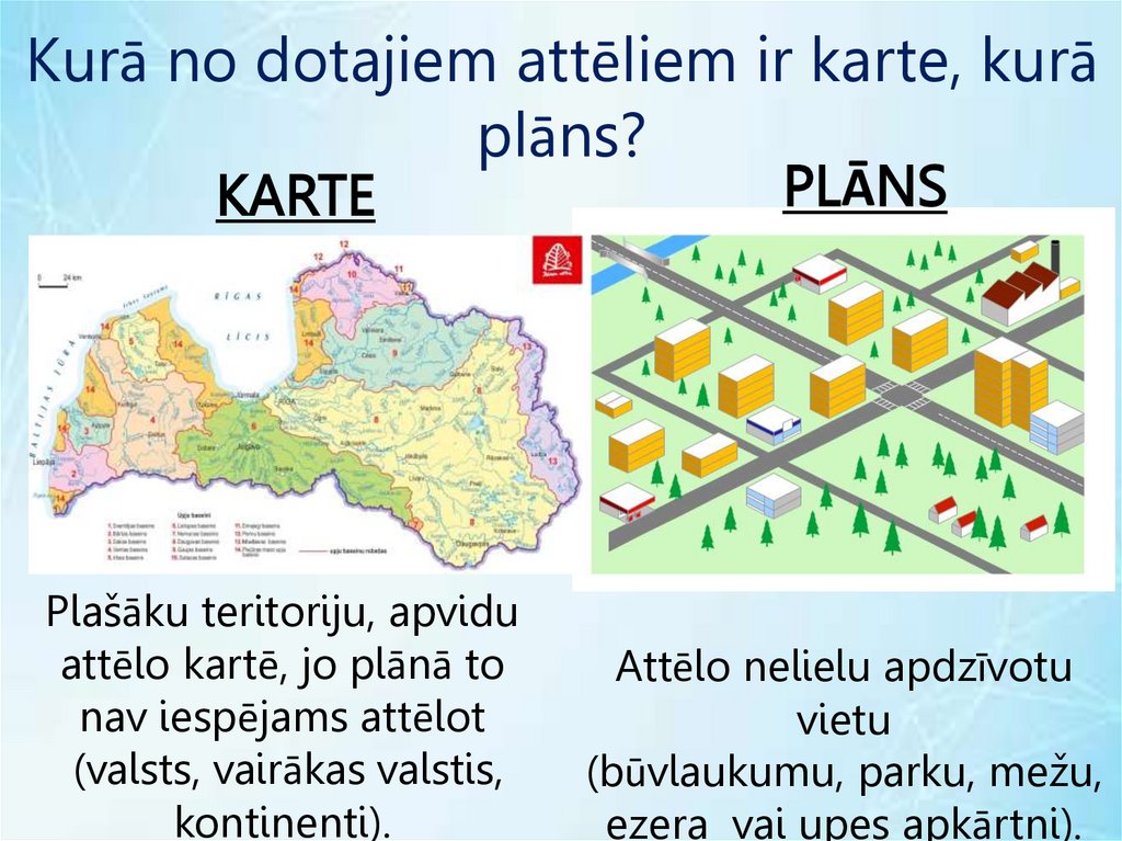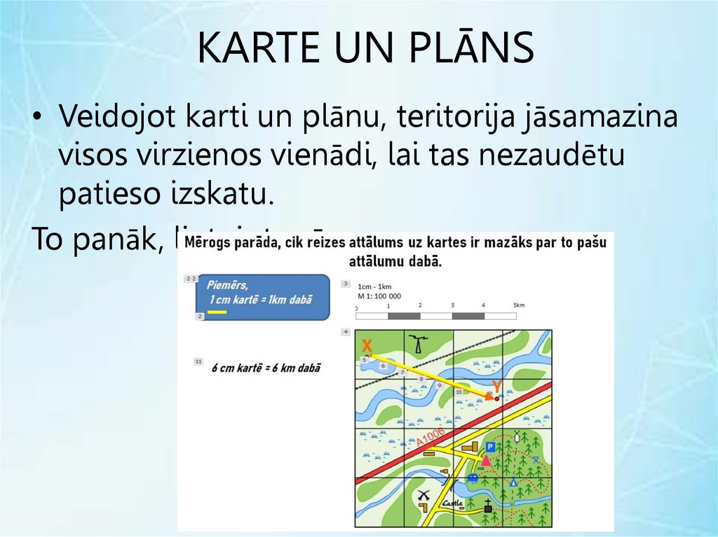 KARTE UN PLĀNS• Veidojot karti un plānu, teritorija jāsamazina
