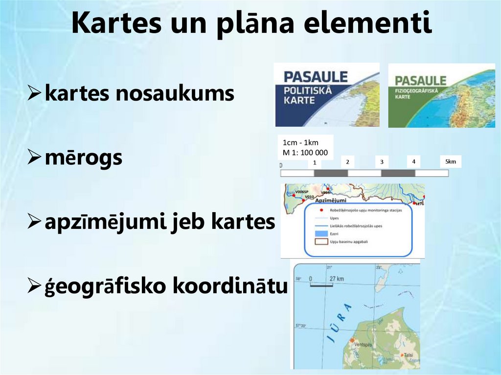 Kartē un plānā tiek attēloti dažādi