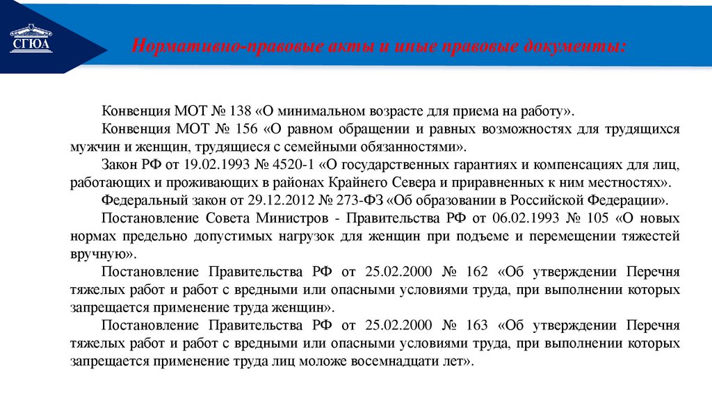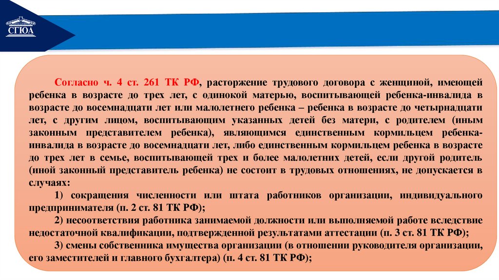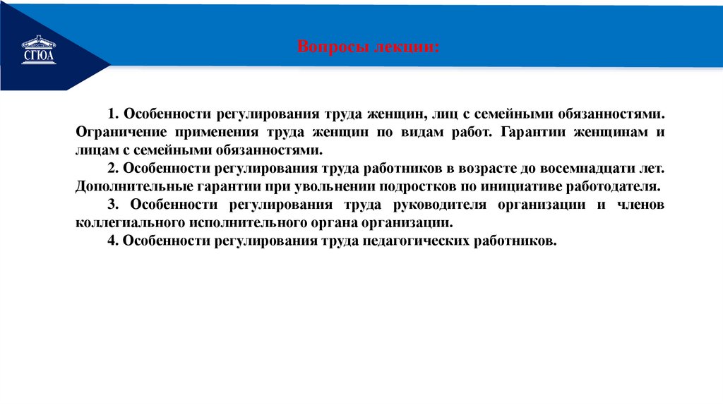Вопросы лекции:1. Особенности регулирования труда женщин, лиц с семейными обязанностями.