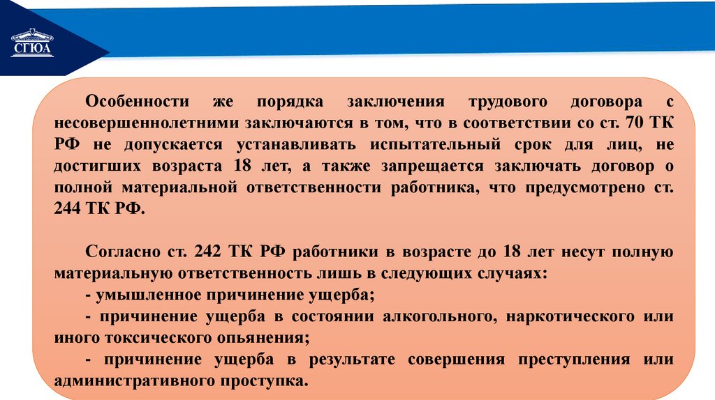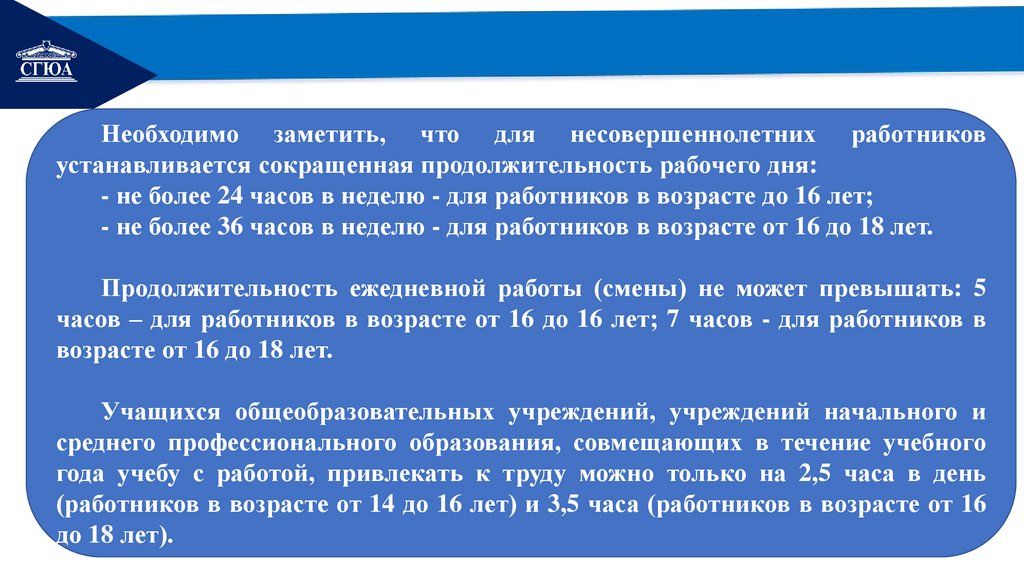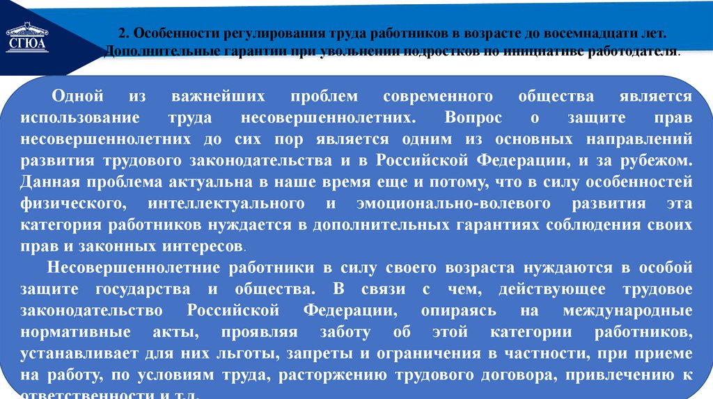 2. Особенности регулирования труда работников в возрасте до восемнадцати лет.