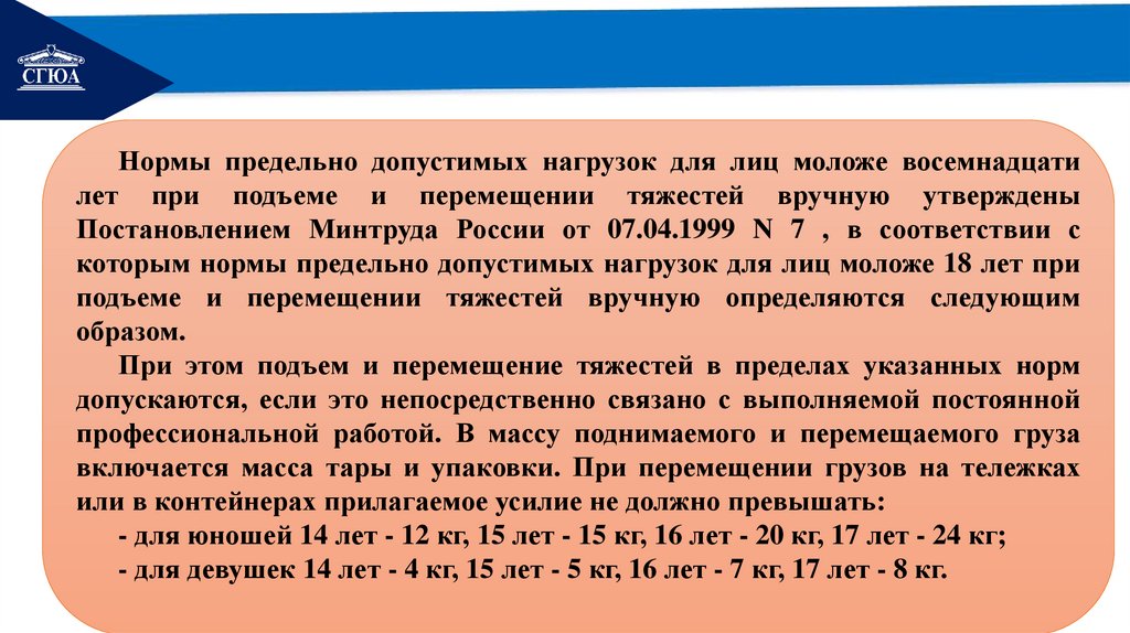 нормах предельно допустимых нагрузок для женщин при подъеме и перемещении тяжестей