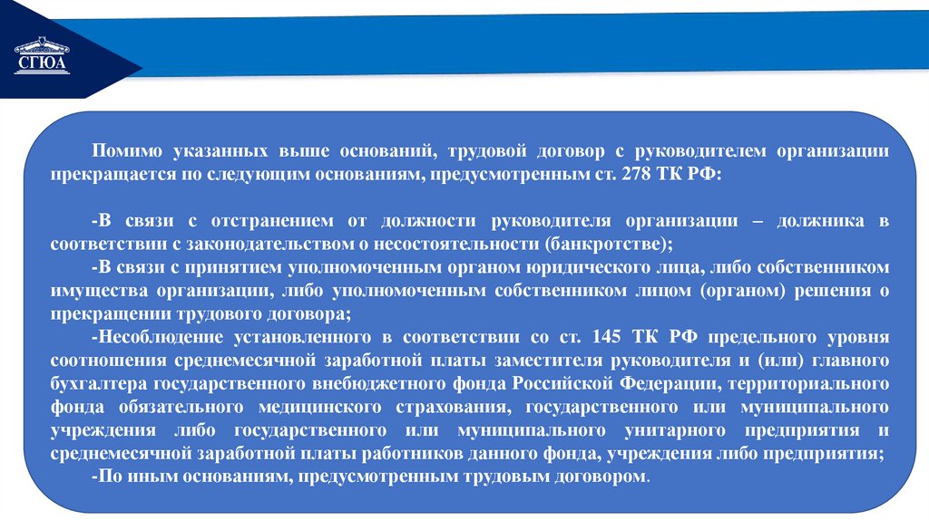 Прекращение трудового договора по п. 1 ст. 336 ТК предусматривает увольнение