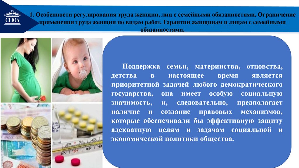 1. Особенности регулирования труда женщин, лиц с семейными обязанностями. Ограничениеприменения труда женщин по видам работ. Гарантии женщинам и лицам с семейными