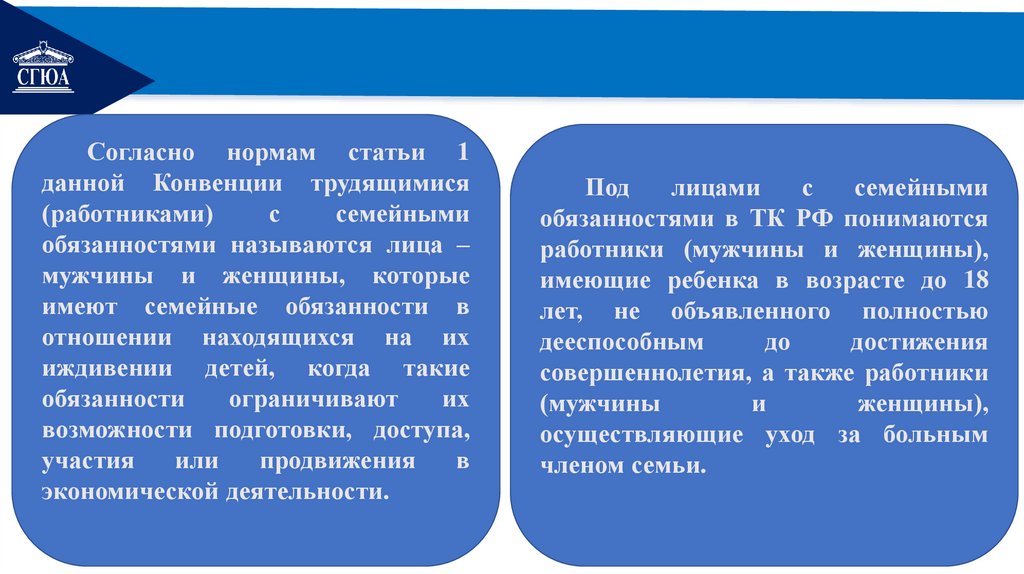 Термин «лица с семейными обязанностями» заимствован из Конвенции
