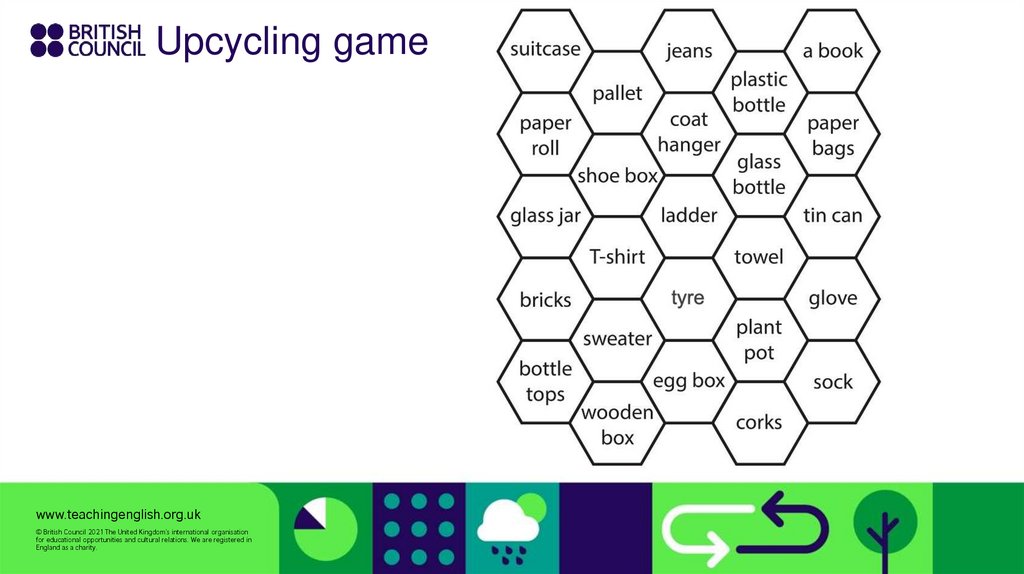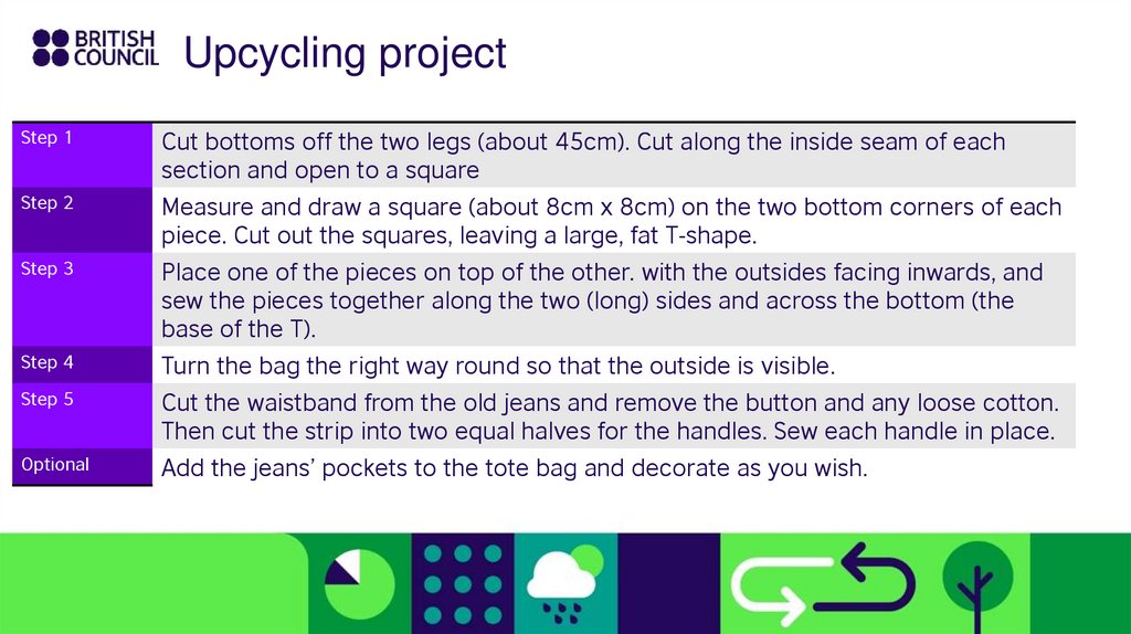 __________ and finding ways to 11. __________ less and 12. __________ more, upcycling