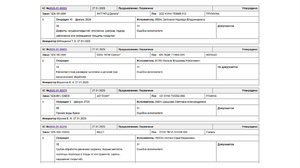 Для анализа отклонений в зависимости от типа изделий недостаточно в графе «Заказчик» указания АО «ЭЗАН» (формулировки берутся из приказов на