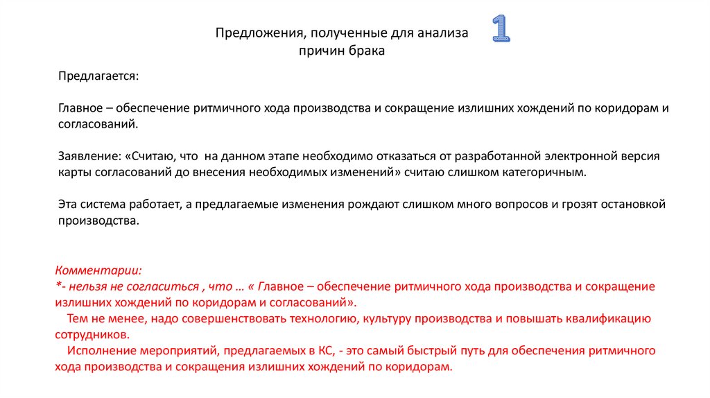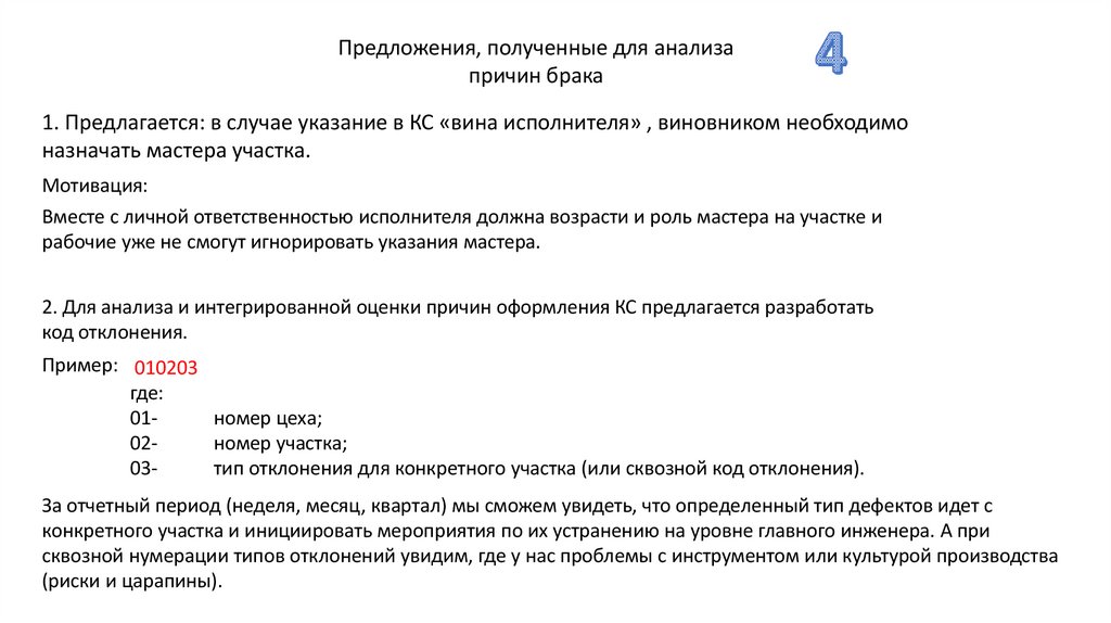 Для анализа и интегрированной оценки причин оформления КС предлагается разработать код отклонения. С