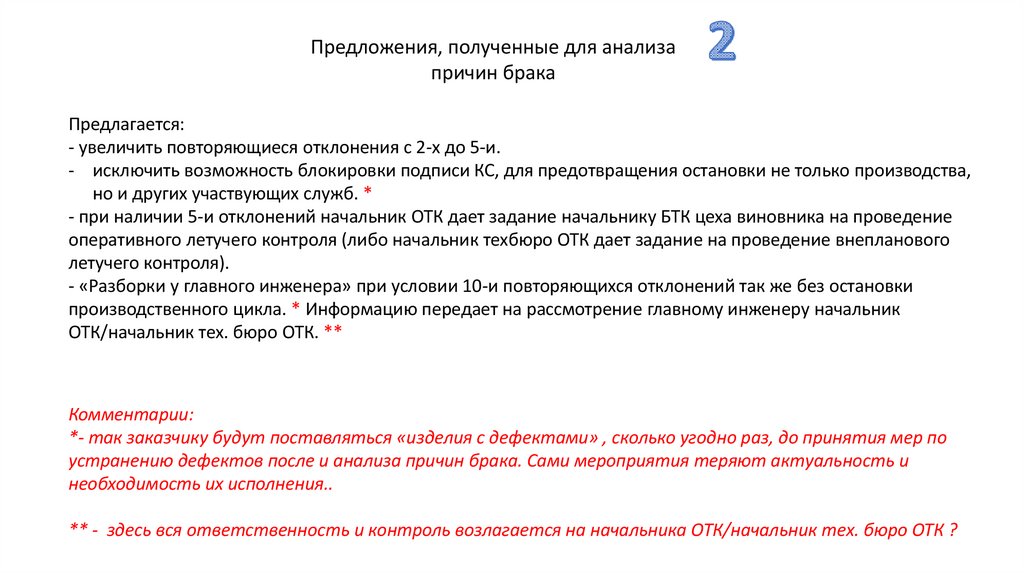 При наличии 5-и отклонений начальник ОТК дает задание начальнику БТК цеха виновника на проведение