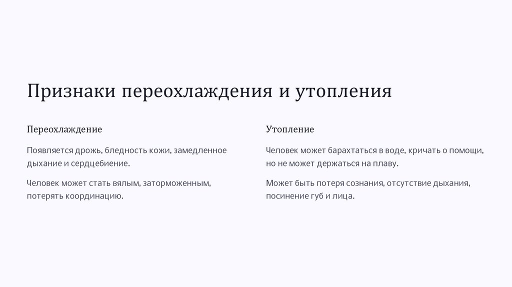 Признаки переохлаждения и утопленияПереохлаждение