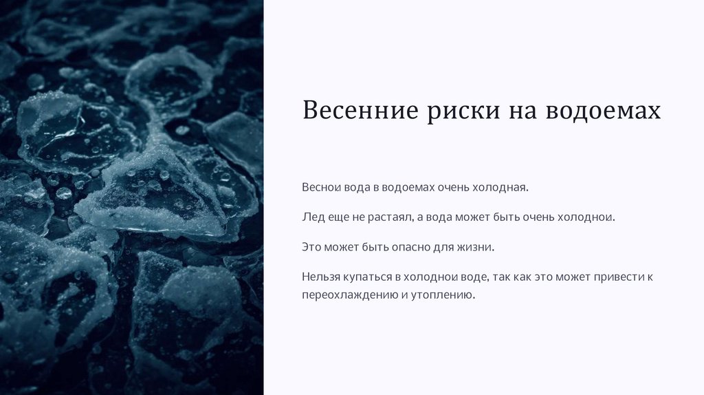 Правила безопасности веснойНе купаться в холодной воде
