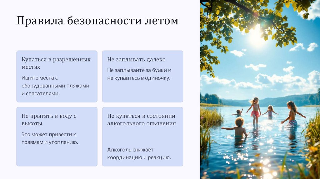 Правила безопасности летомКупаться в разрешенных