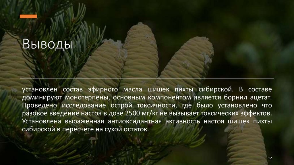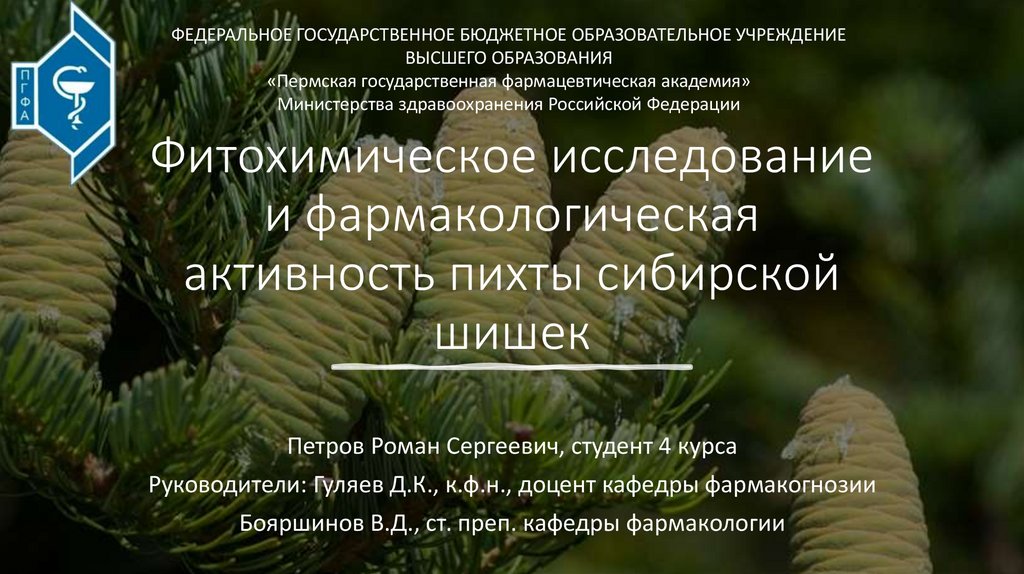 Фитохимическое исследование и фармакологическая активность пихты сибирской шишек