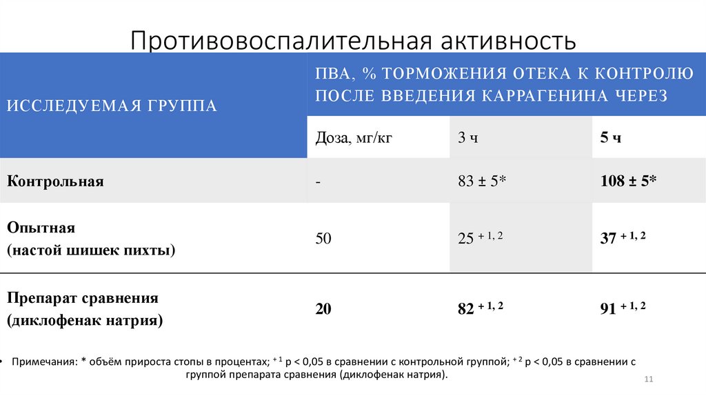 Противовоспалительная активностьИССЛЕДУЕМАЯ ГРУППА