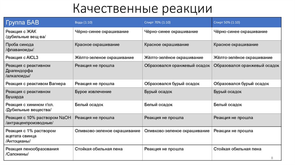 Оливково-зеленое окрашивание Оливково-зеленое окрашивание Реакции не прошла