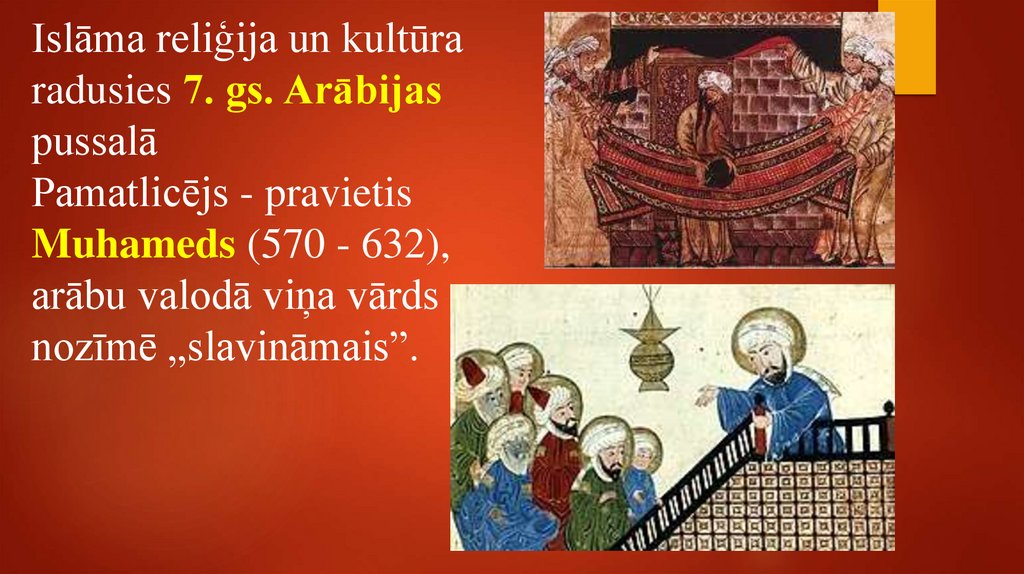 Islāms. Islāma reliģija un kultūra radusies 7. gs. Arābijas pussalā