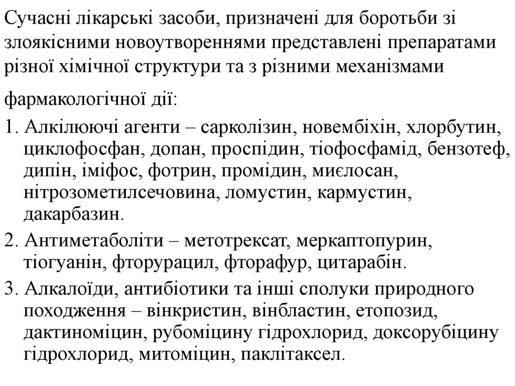 2. Сучасні лікарські засоби, призначені для боротьби зі злоякісними новоутвореннями представлені препаратами різної хімічної