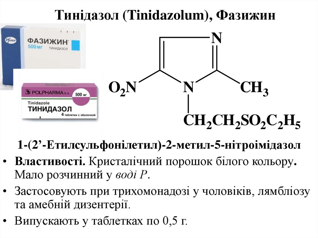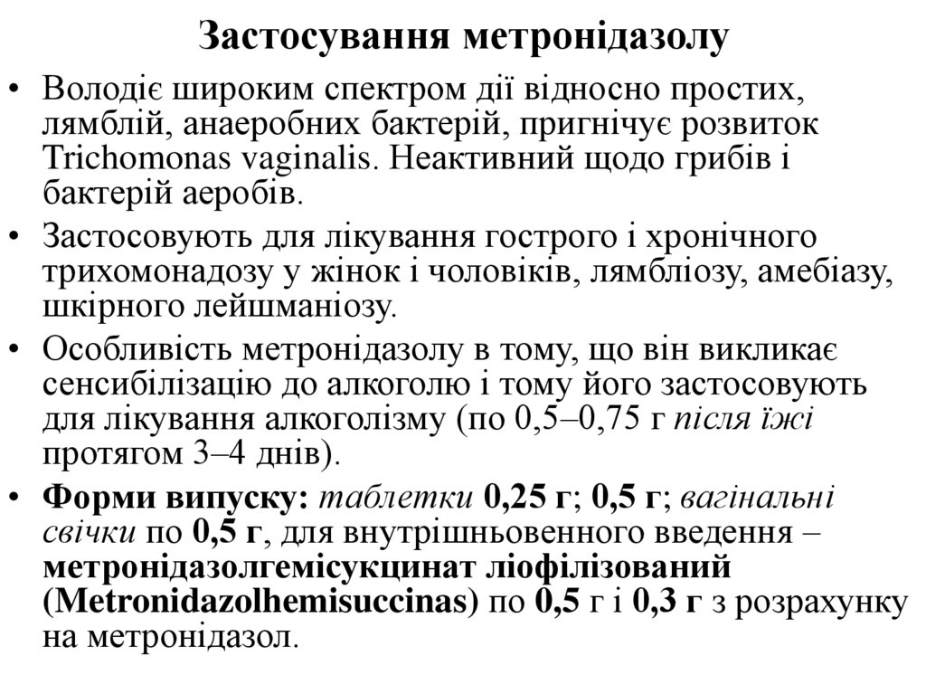 • Застосовують при трихомонадозі у чоловіків, лямбліозу