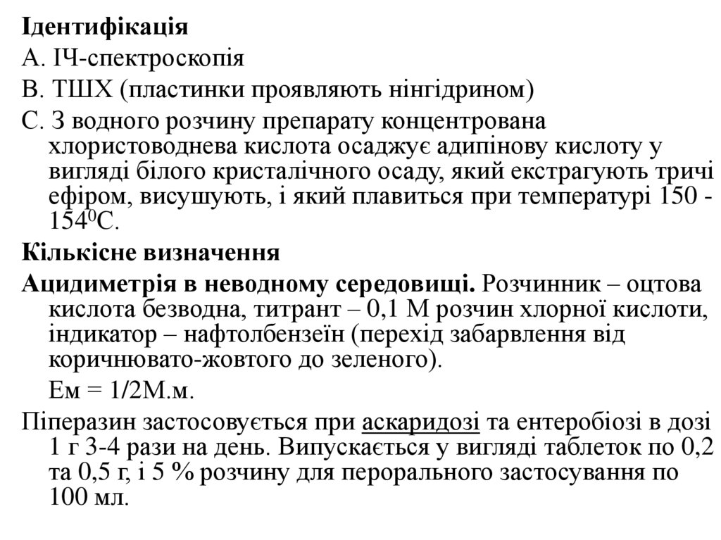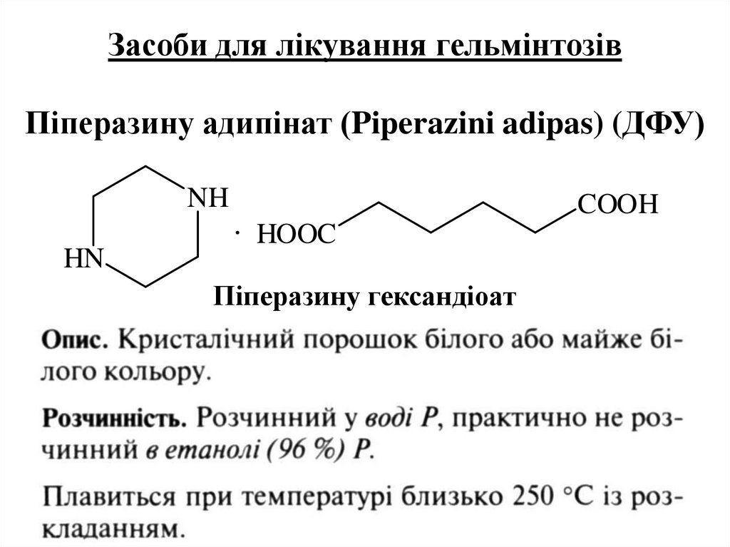 104. Засоби для лікування гельмінтозів Піперазину адипінат (Piperazini adipas) (ДФУ)