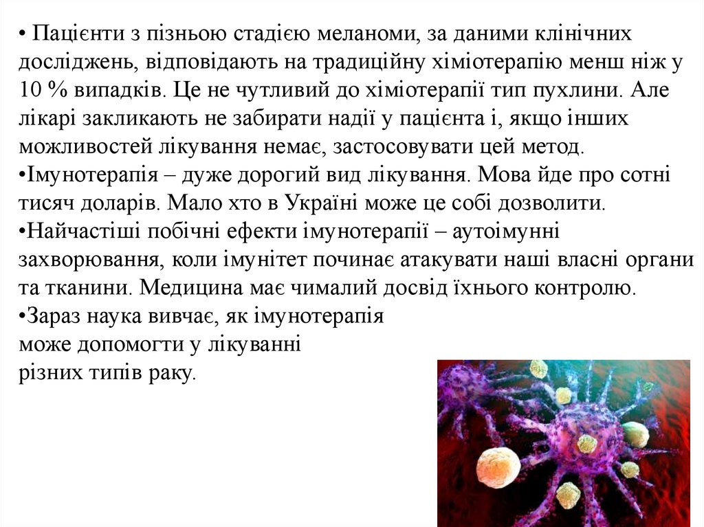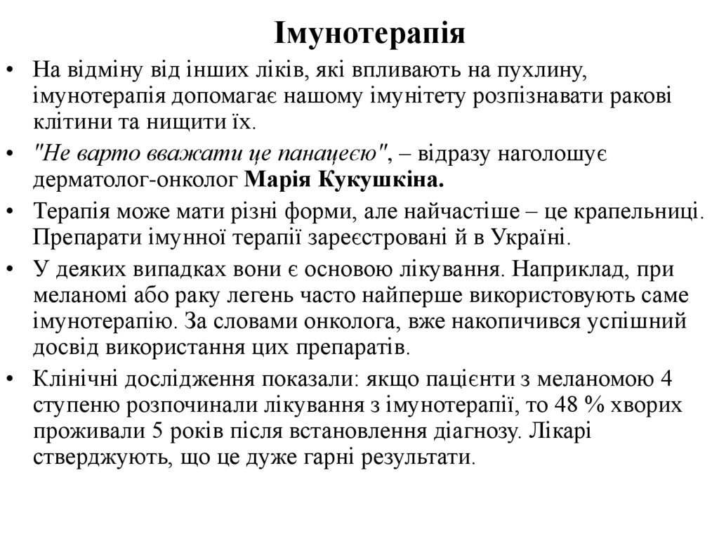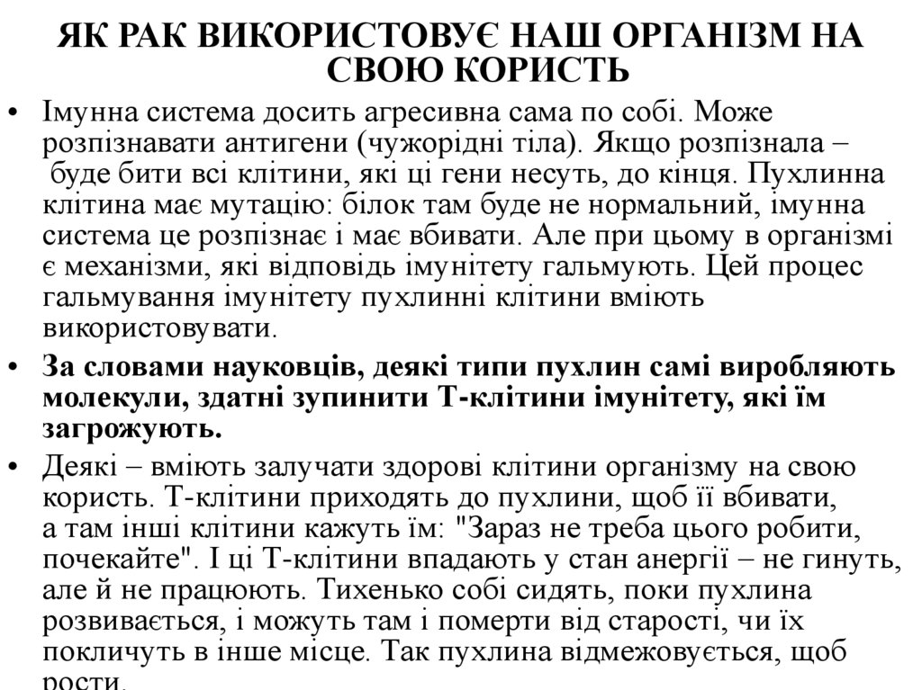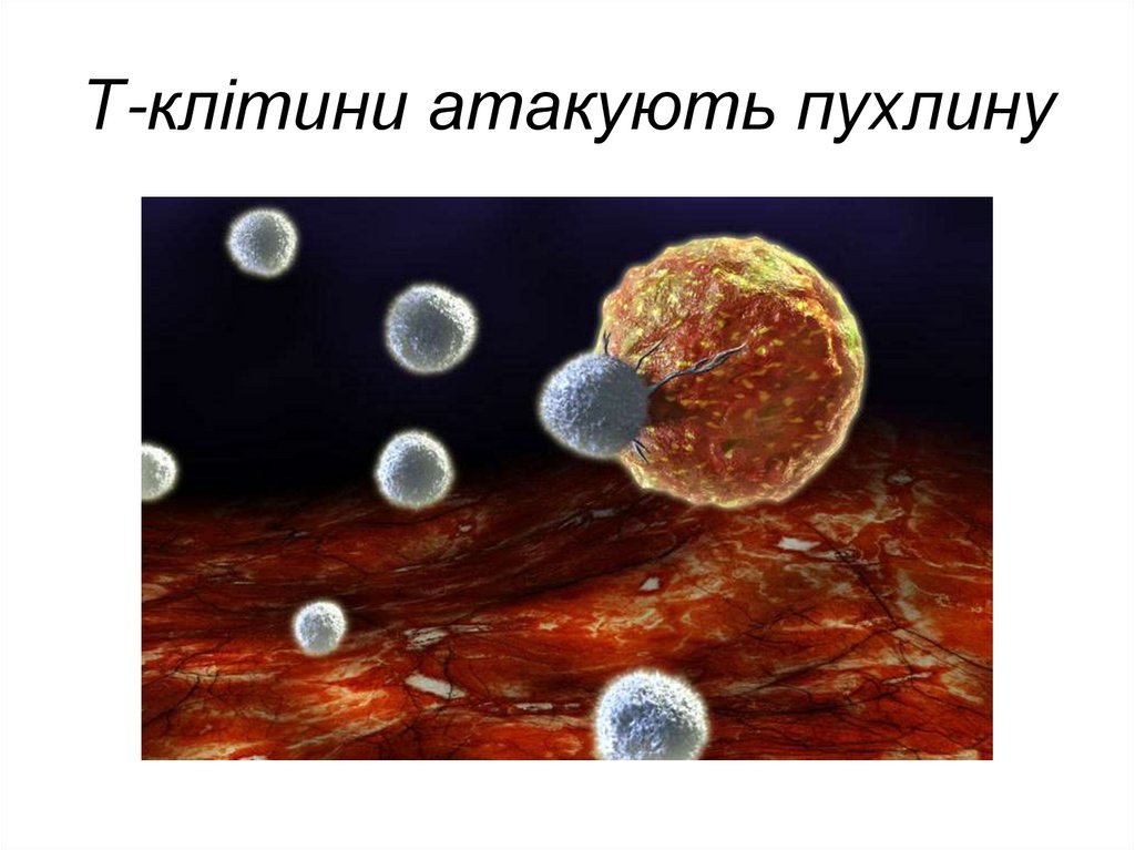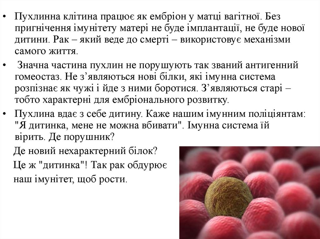 • Пухлинна клітина працює як ембріон у матці вагітної. Безпригнічення імунітету матері не буде імплантації, не буде нової