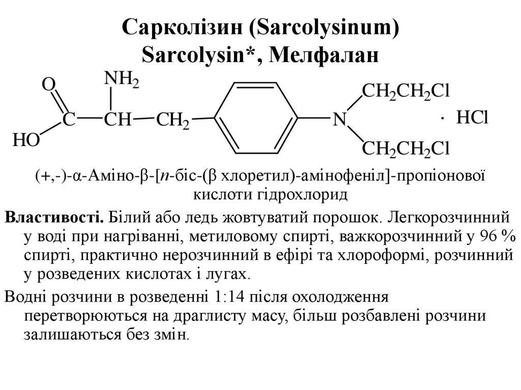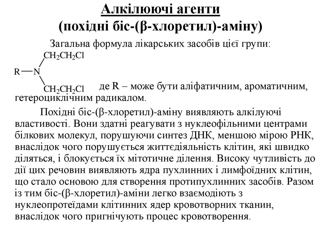 1. Алкілюючі агенти – сарколізин, новембіхін, хлорбутин,