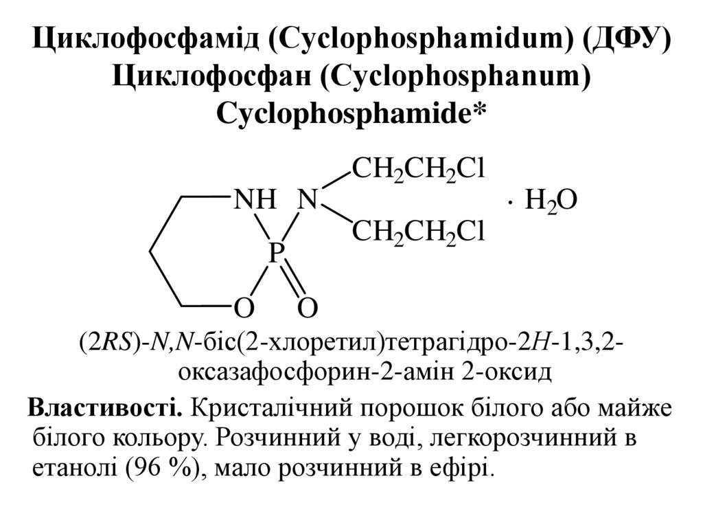 циклофосфан, допан, проспідин, тіофосфамід, бензотеф,