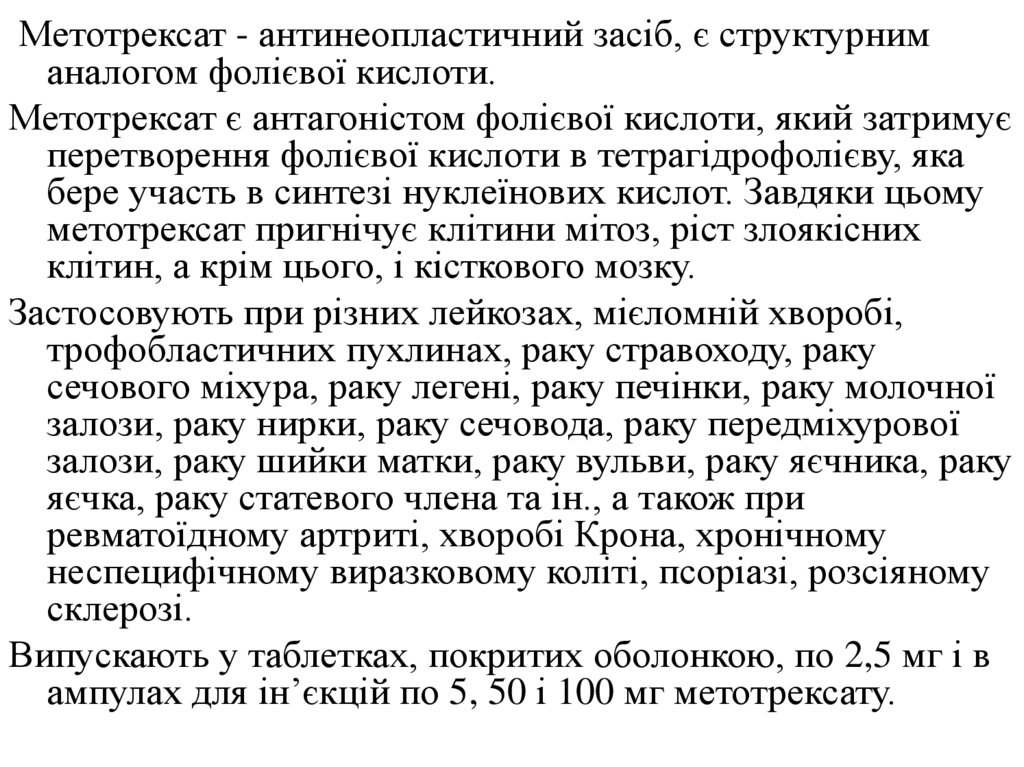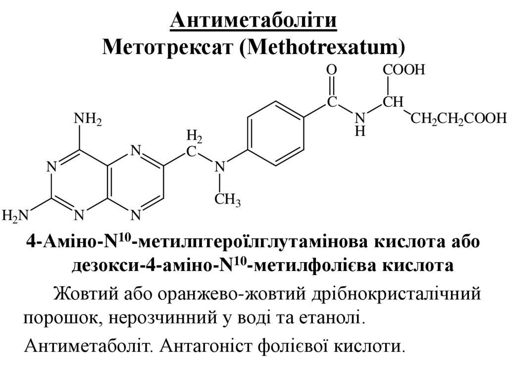 2. Антиметаболіти – метотрексат, меркаптопурин,