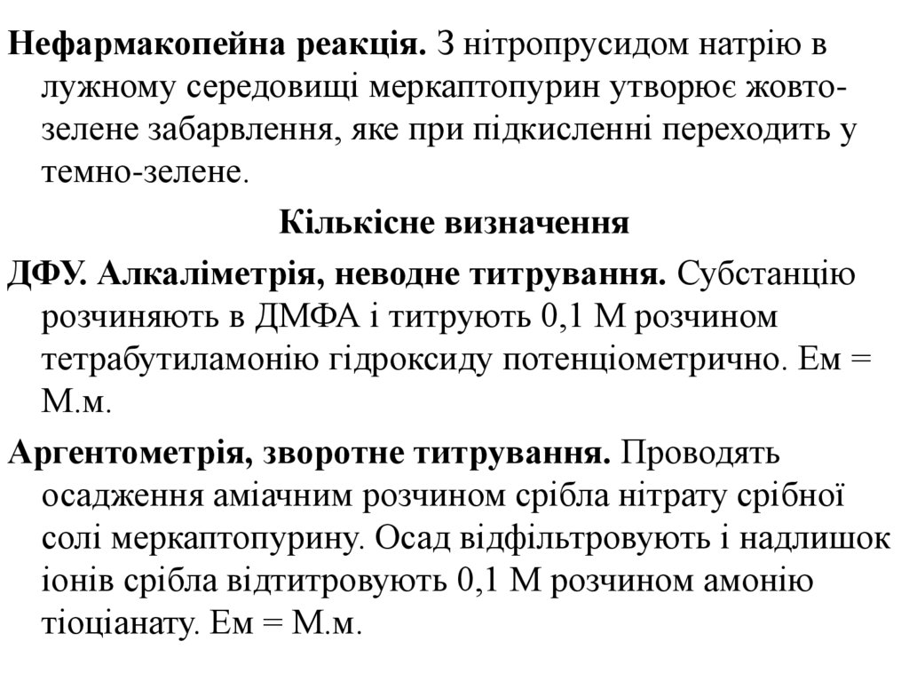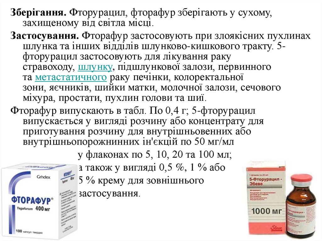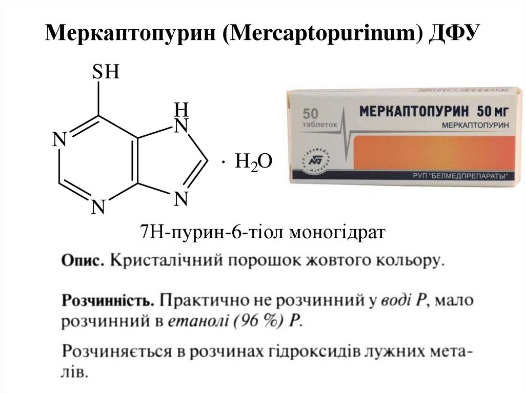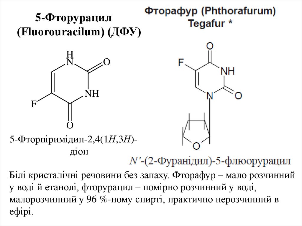 тіогуанін, фторурацил, фторафур, цитарабін.